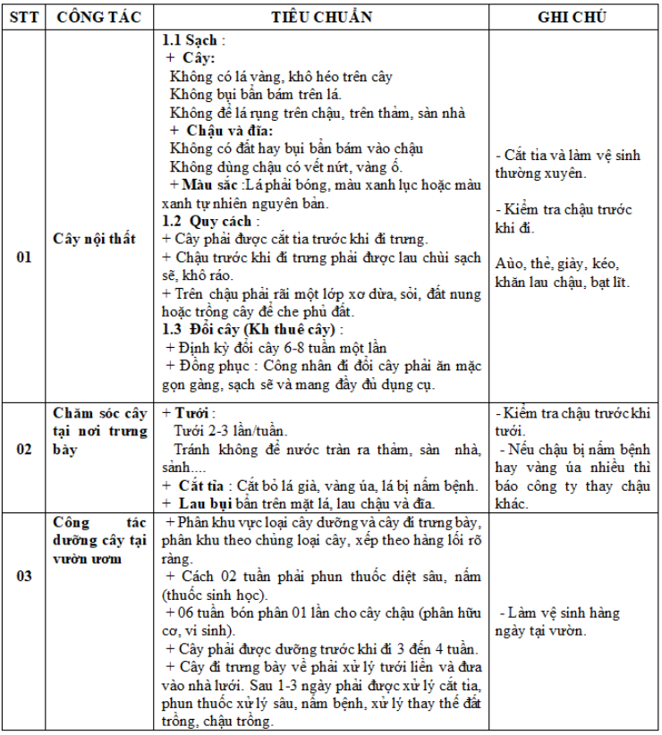 Tiêu Chuẩn Chăm Sóc Cây Nội Thất - TMC