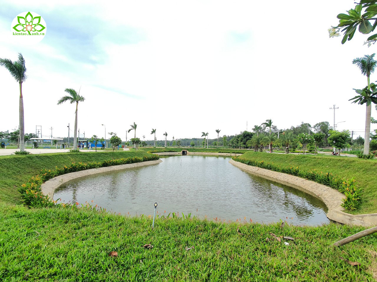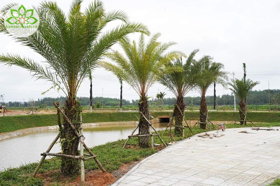 Cây Chà Là tạo bóng mát quanh hồ.