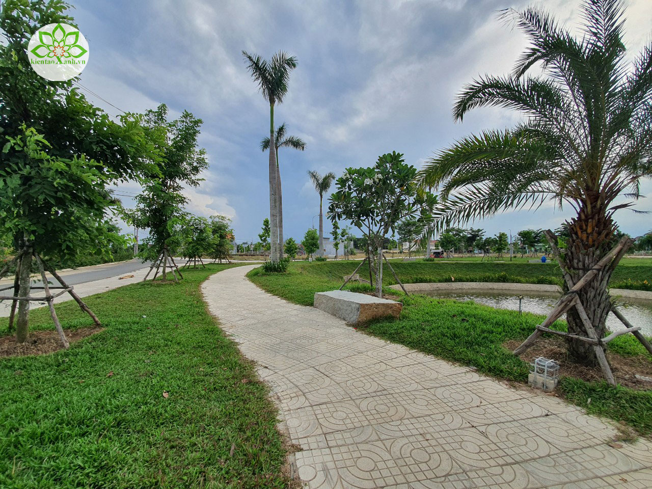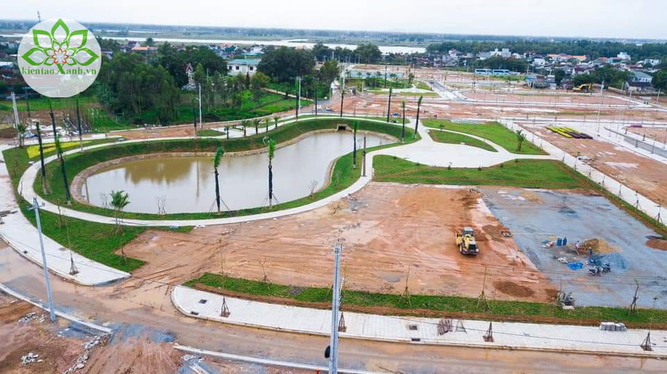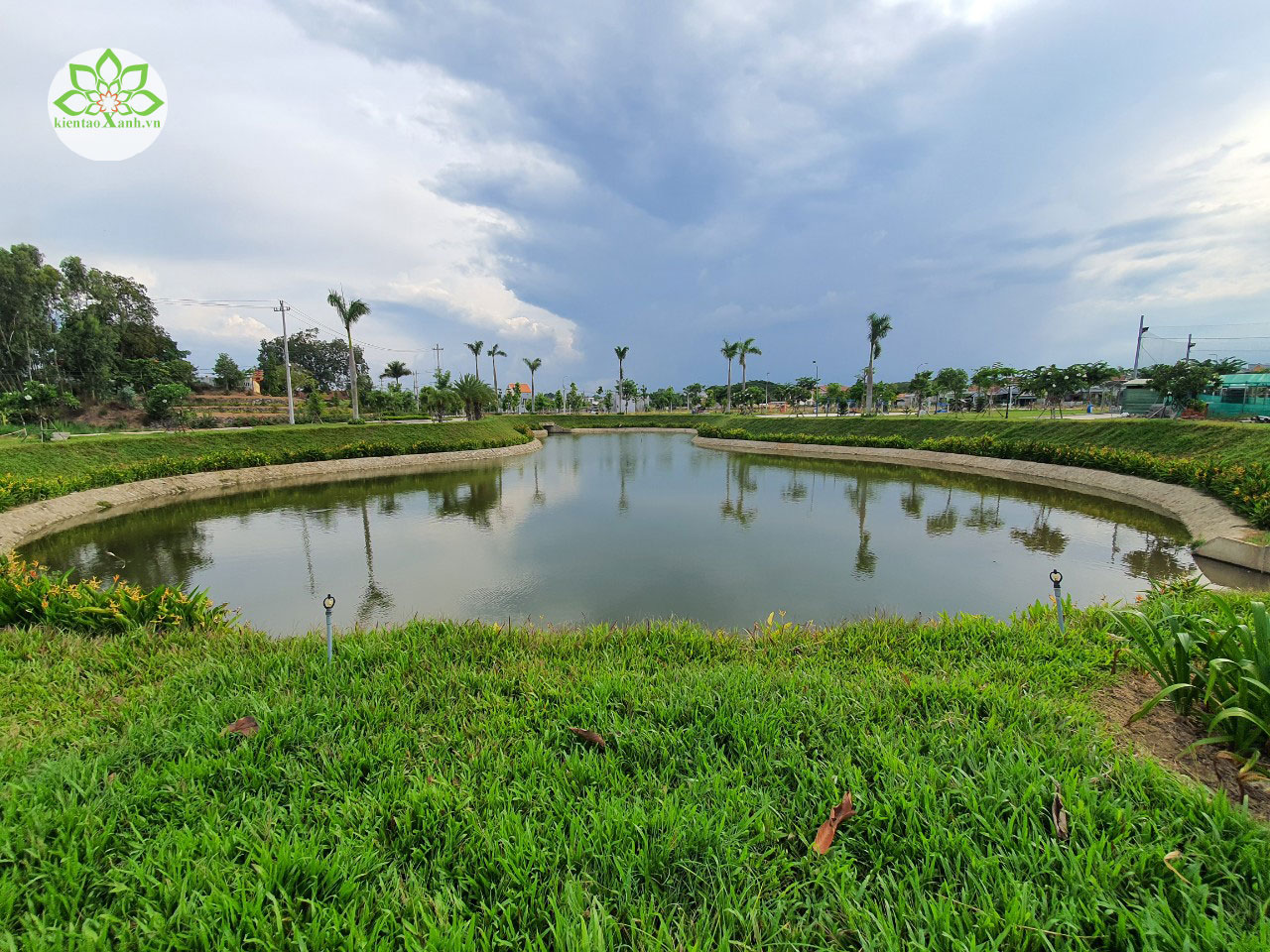 Phối cảnh cây xanh quanh hồ.