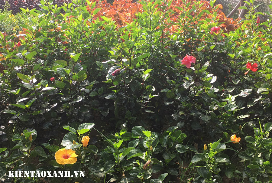 - Dâm Bụt cũng được trồng nhiều làm cây hàng rào hoặc thành bụi tô điểm thêm vẻ đẹp cho sân vườn.