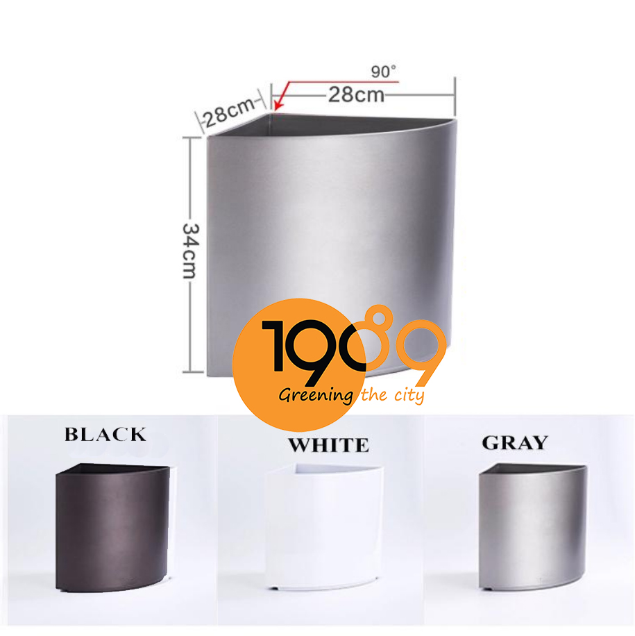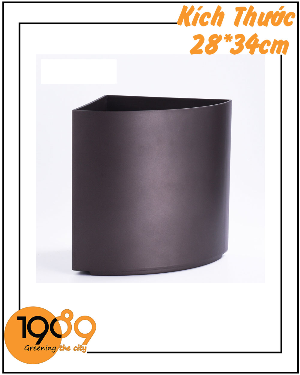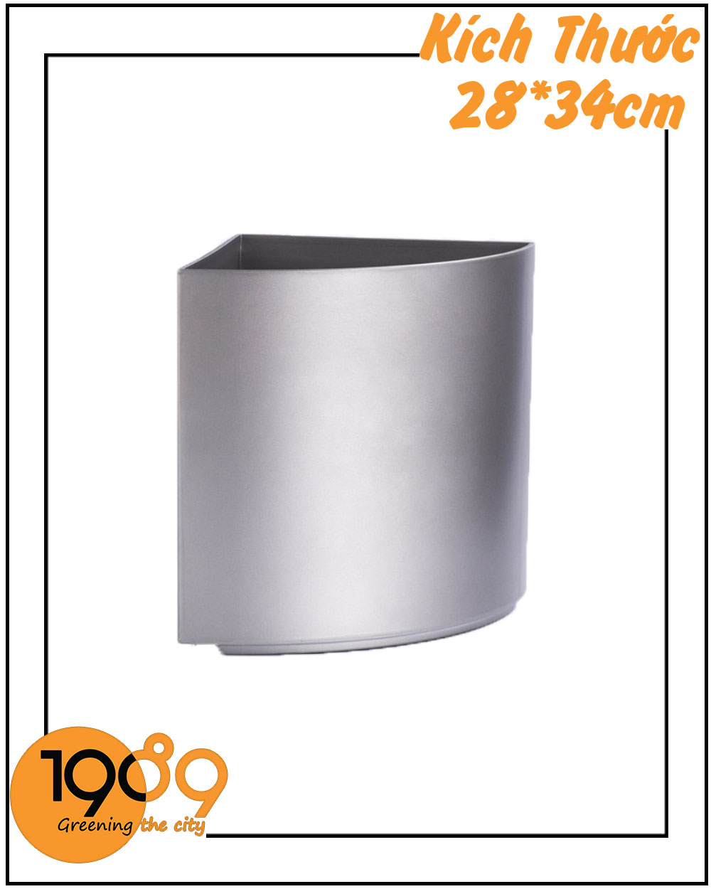 Chậu Góc 1989 thuộc dòng sản phẩm xi măng nhẹ, chậu mang phong các hiện đại và độc đáo với hình dáng 1/4 hình tròn. Kích thước 28x28x34 cm với 3 mẫu đen, trắng và xám. Chậu được sử dụng nhiều trong trang trí văn phòng, quầy lễ tân, phòng khách hay sân thượng, quán cafe,...
