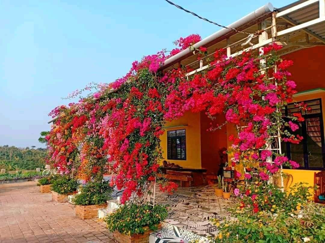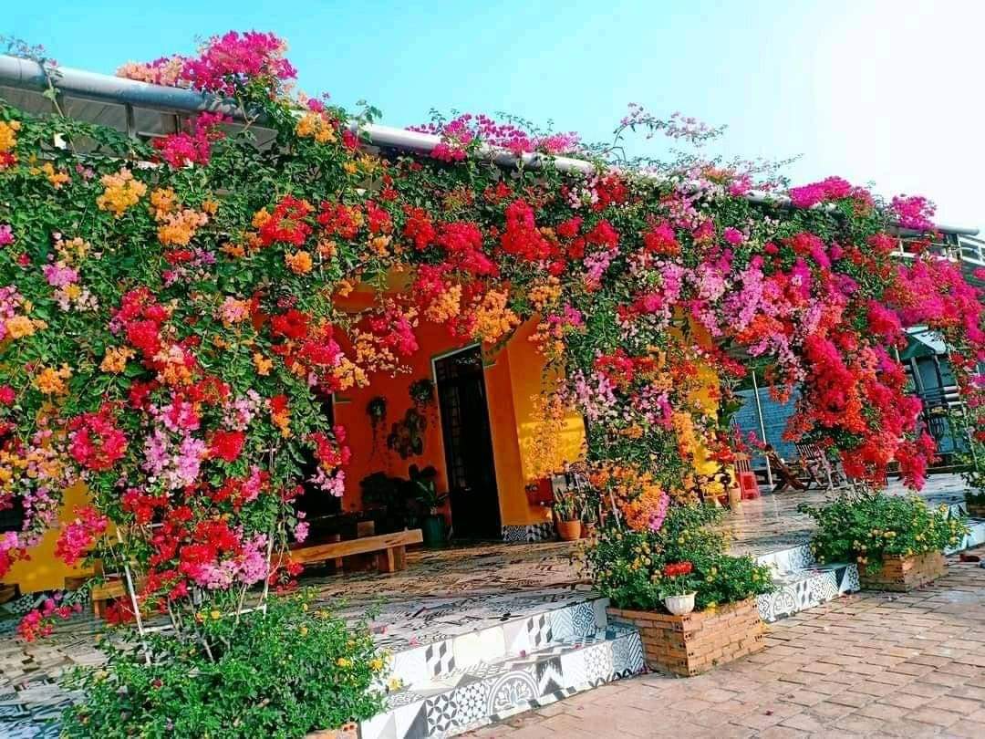 Có một ngôi nhà quá đỗi bình yên lối vào nhà rực sắc hoa